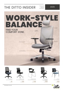 THE DITTO INSIDER FIND YOUR COMFORT ZONE. 2025 Corporate Seating Catalogue PEOPLE’S CHOICE JUST BREATHE Global elegance. Local craft. FLEXIBLE SOLUTIONS MAXI RANGE LET’S MEET Executive, Managerial & SOHO seating Ergonomic Mesh Back Chairs PAGE PAGE PAGE PAGE PAGE 24 6 34 60 62 Seating solutions throughout the office Larger Chairs ranging from 160 - 180kg capacity Chairs for gathering places WORK-STYLE BALANCE Custom Taupe Upholstery 5-Star Chrome Spider Base 1D Height Adjustable Arms Netted Backrest Mesh Netting JUST BREATHE - BLAZE TAUPE